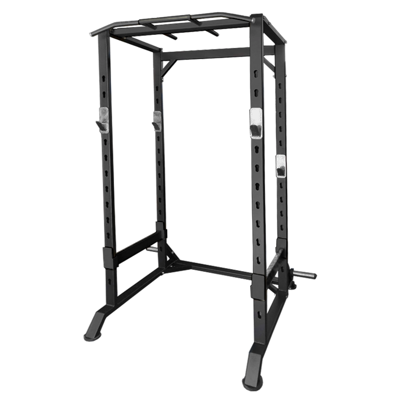 По обе стороны рамы предусмотрено шесть пар вертикальных фиксаторов для установки штанги. Опорные элементы выполнены из ударопрочного пластика, который защищает стойку от механических повреждений и обеспечивает надёжную фиксацию грифа на нужной высоте.
