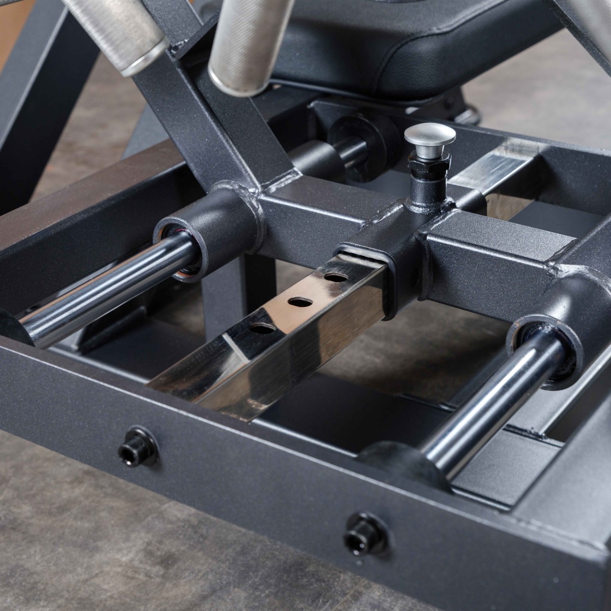 Противоположный конец рычага оснащён рабочим упором (рычагом толкания) из круглой стальной трубы длиной 510 мм и диаметром 75 мм. Элемент покрыт порошковой краской и регулируется по дугообразной траектории в шести фиксированных положениях при помощи механического фиксатора.