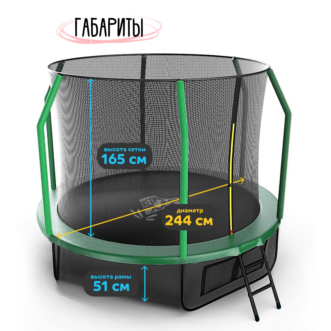 В комплекте идет лесенка для подъема на батут.