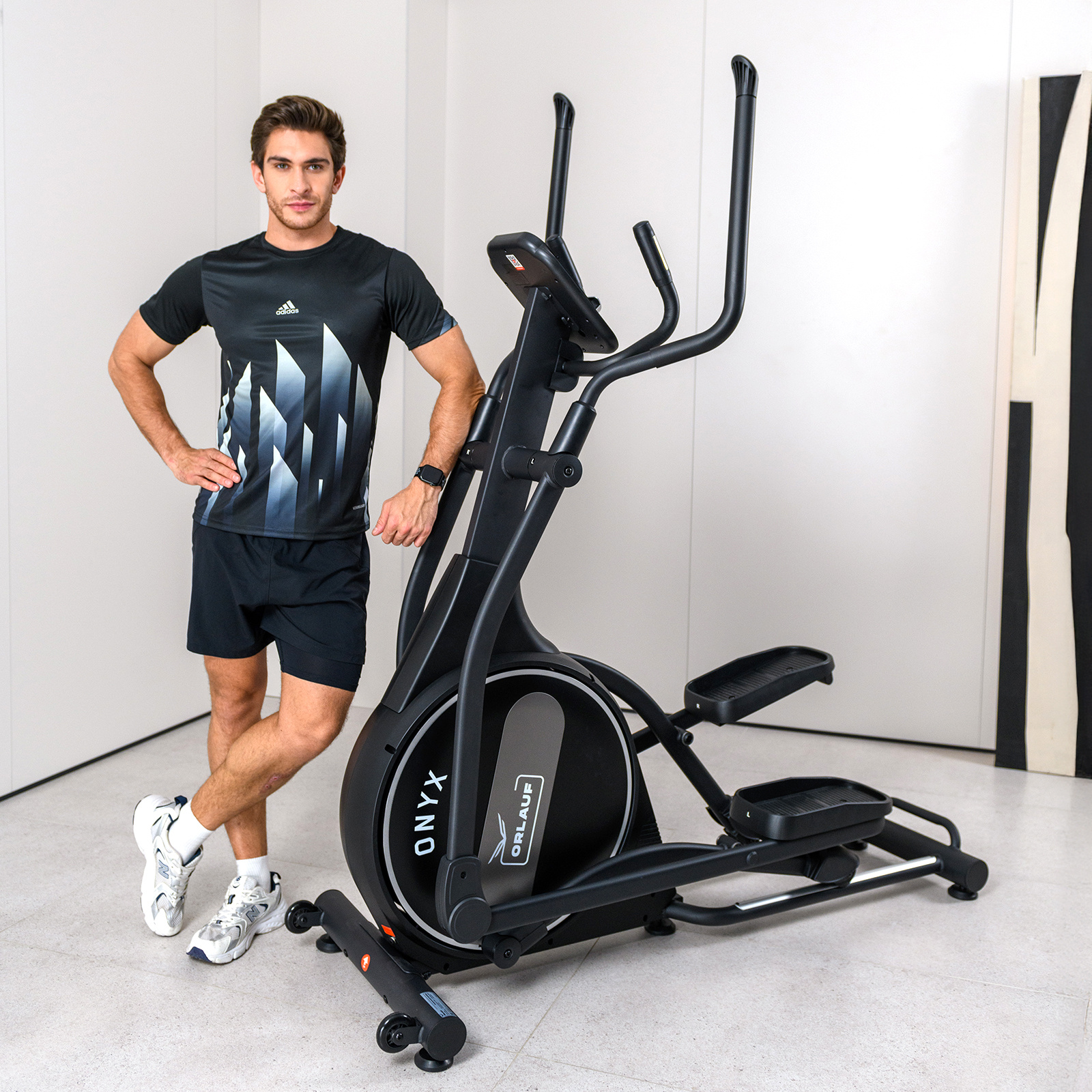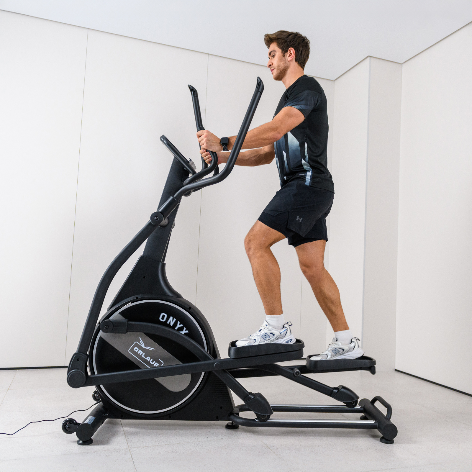 Эргономика Orlauf Onyx продумана для комфортных тренировок. Длина шага 51 см и расстояние между педалями 6 см обеспечивают удобное положение тела. Встроенные сенсорные датчики пульса и совместимость с беспроводным кардиопоясом помогают контролировать эффективность занятий.