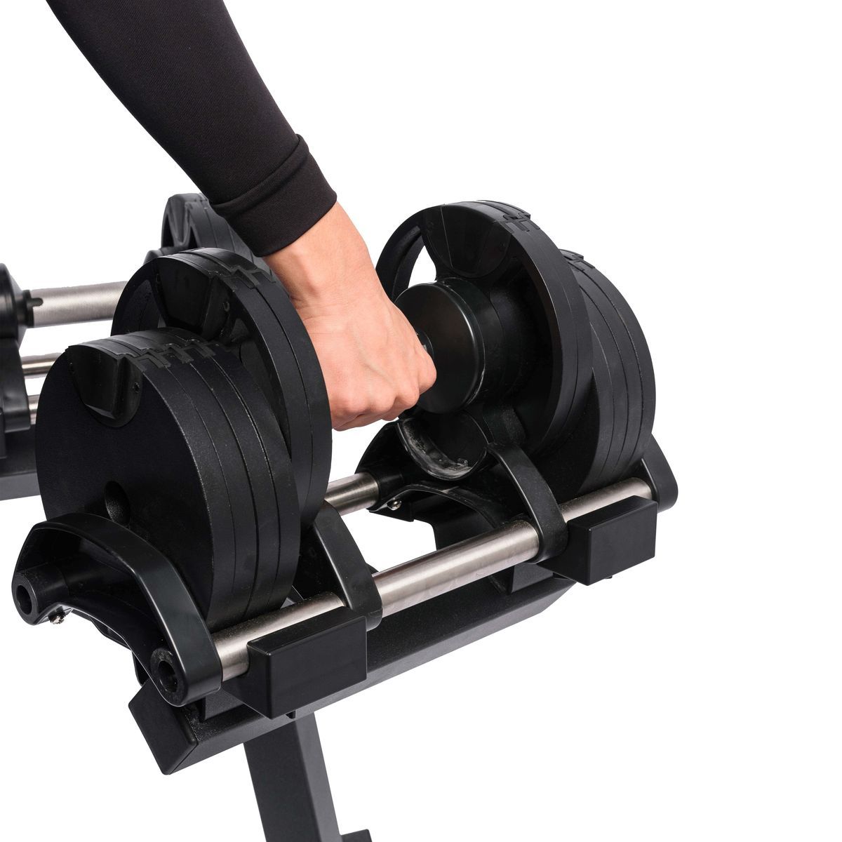 Гантель с регулируемым весом (до 20 кг) предназначена для разнообразных упражнений в интенсивном темпе.