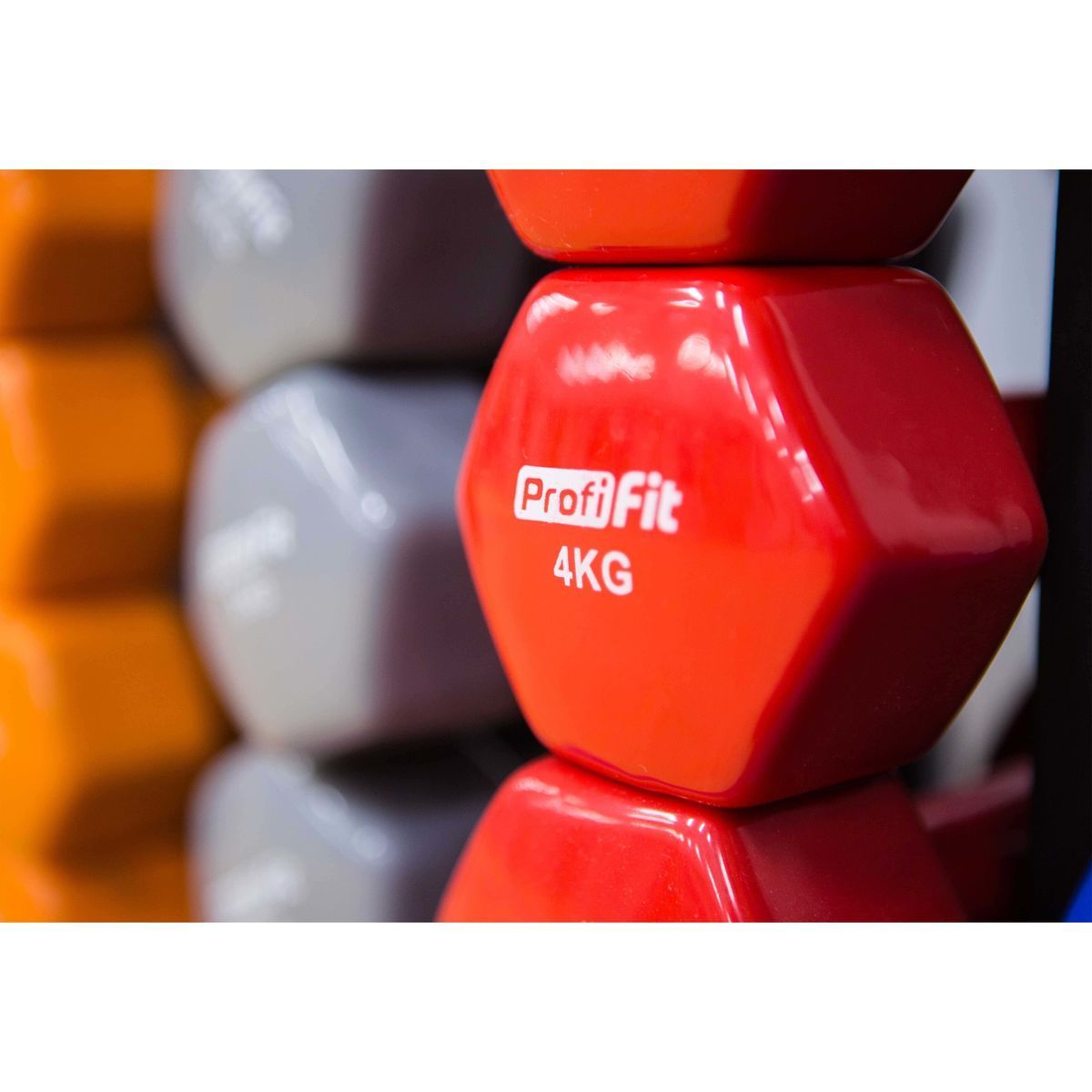 Гантель в виниловой оболочке, шестигранник PROFI-FIT 4 кг, красная