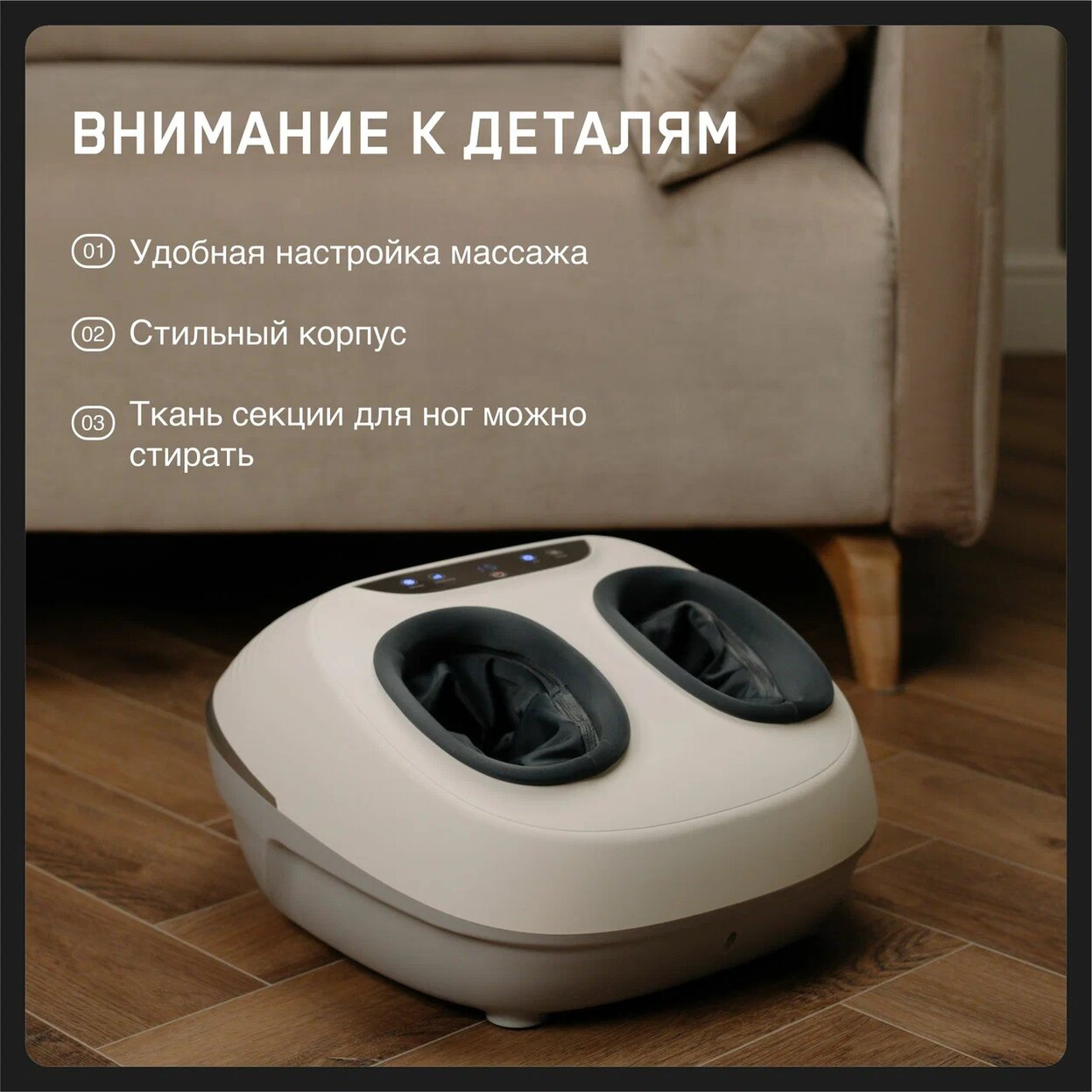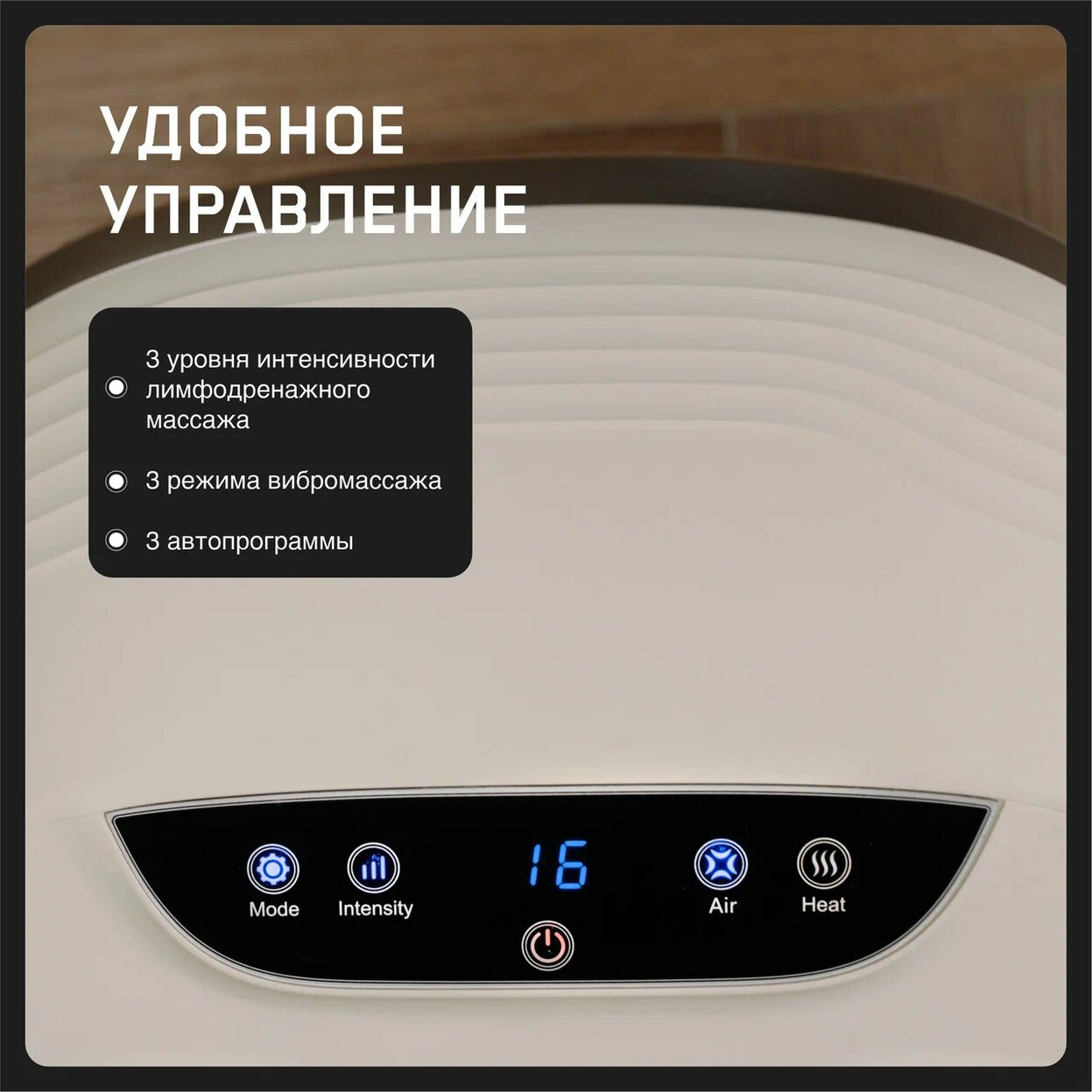 Для более эффективного расслабления можно включить функцию прогрева. С ее помощью эффект легкости в ногах появится раньше и сохранится дольше