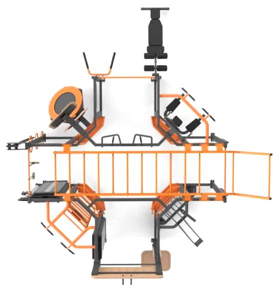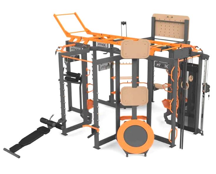 Кроссовер; Шведская лестница; Батут для медболов; Рукоход; Мультитурники; Брусья; Платформа для запрыгивания; Пегборд; Скамья для пресса; Навес для пресса; Кронштейн для боксерского мешка; Кронштейн для каната; Стойка для дисков; Стаканы для грифов; Полки для аксессуаров; Держатель для тяги грифа; Гимнастические кольца; Стойка для приседаний со штангой |