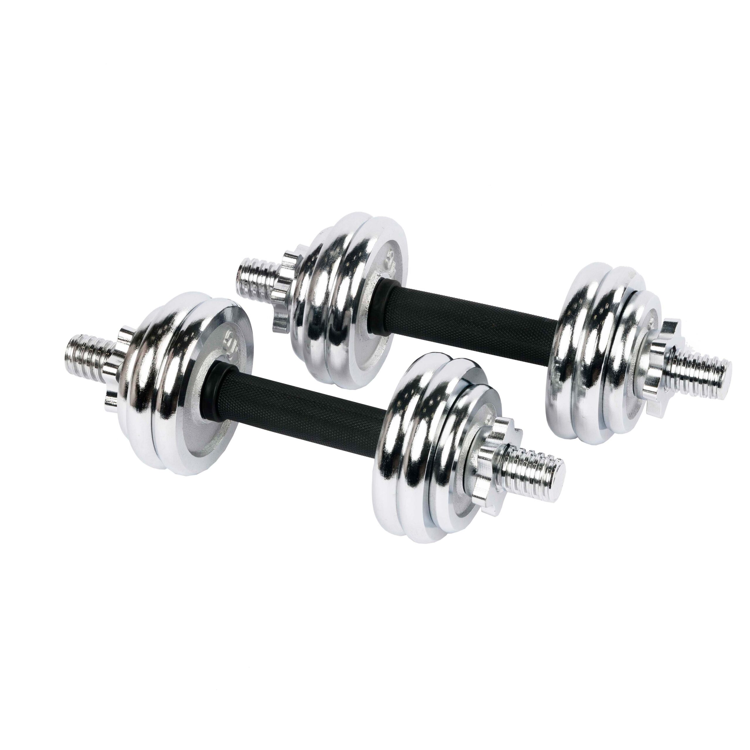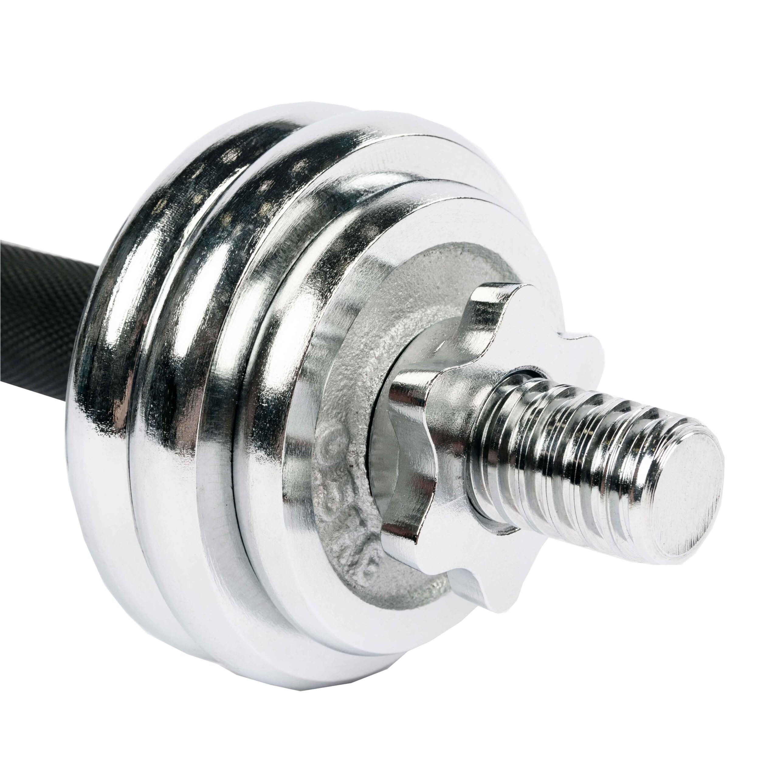 Весовые диски выполнены из металла с зеркальным хромовым покрытием.