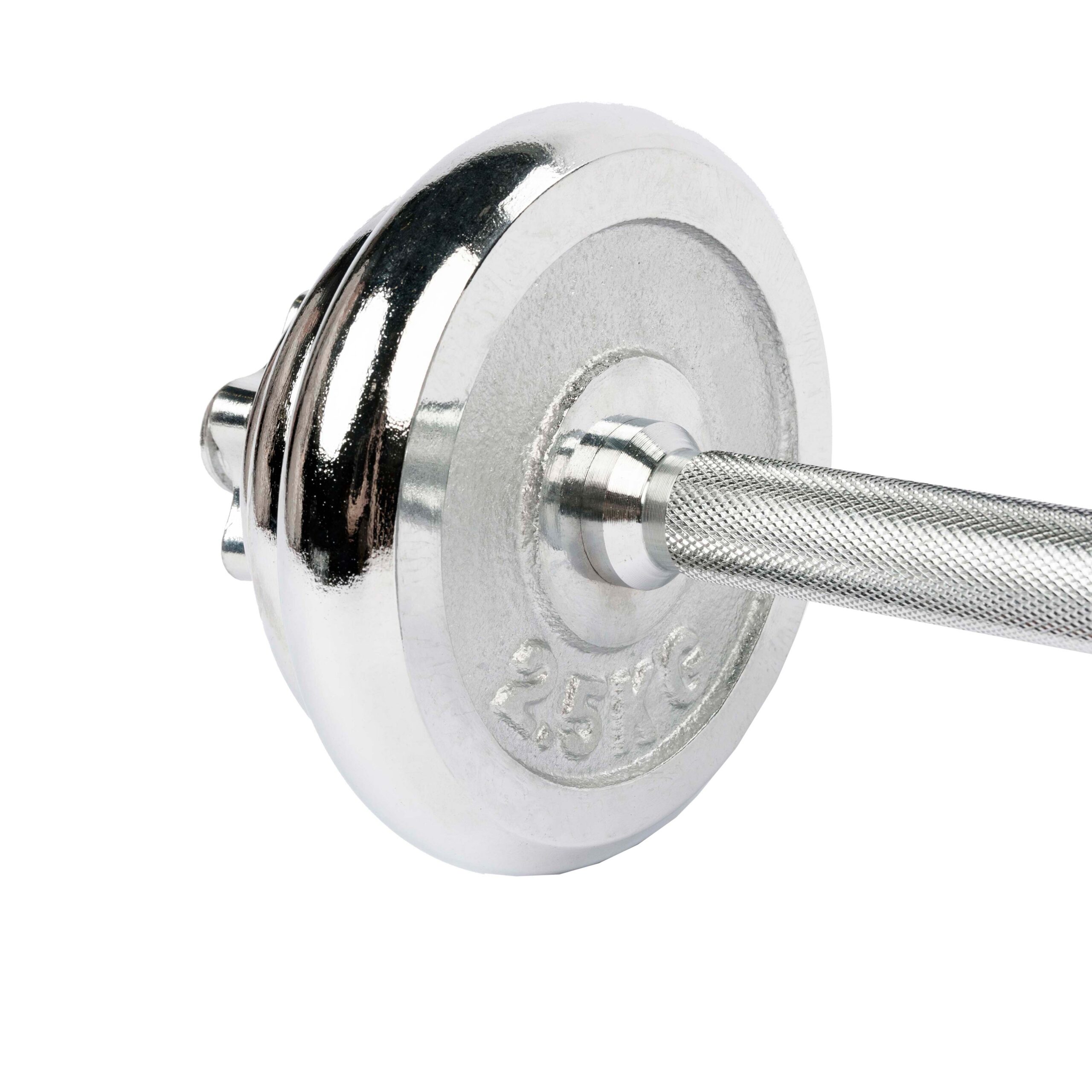Весовые диски выполнены из металла с зеркальным хромовым покрытием.