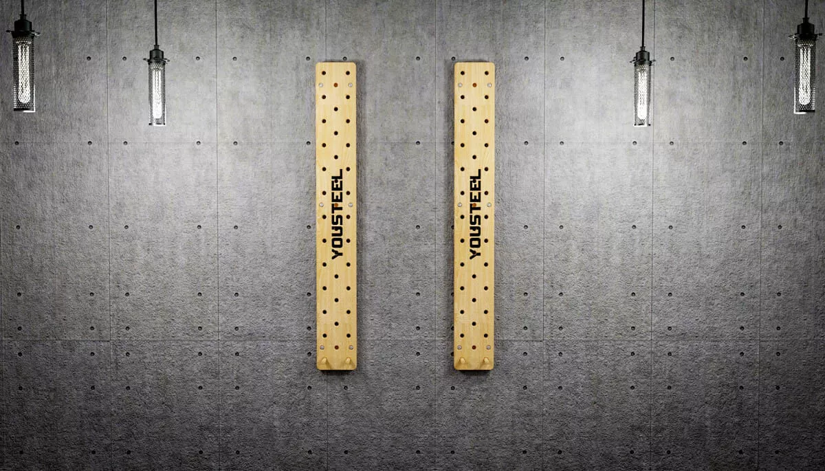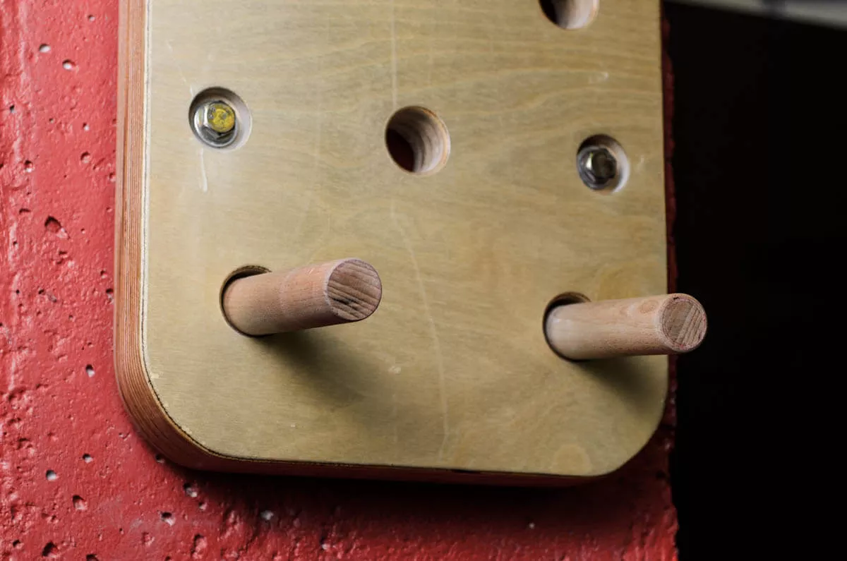 Пегборд, в оригинале Стена Коркина, это эффективный инструмент развития силы и ловкости рук. Конструкция простая – это деревянный щит с высверленными отверстиями и пара ручек. Мы предлагаем 4 варианта размера: 880х300, 880х480, 1600х300, 2320х300. Каждый сможет сконструировать подходящую по размерам и сложности стену для лазания. Если хотите разнообразиться тренировки, то можете сформировать из отдельных частей фигуры и использовать их как дорожки для лазания.
