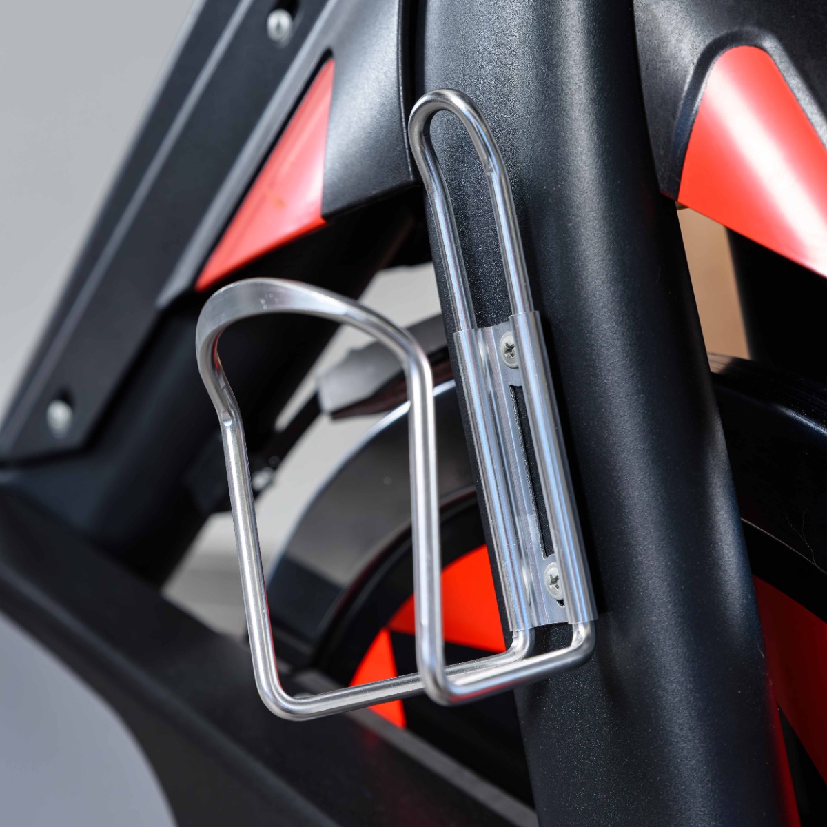 Держатель для бутылки расположен на раме тренажера.