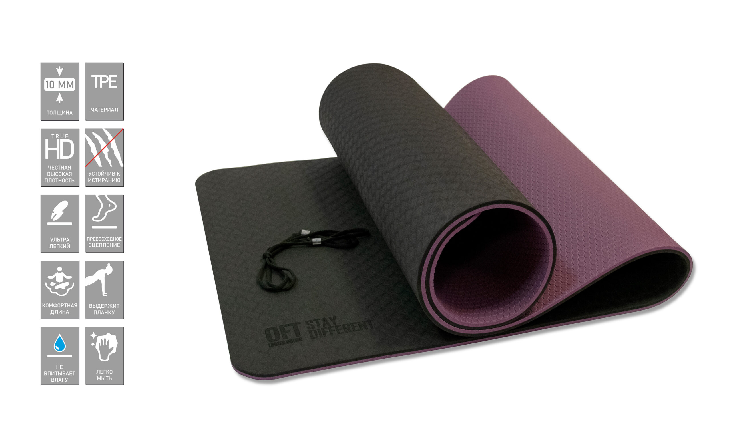 Коврики с вскрытой упаковкой и следами использования (пыль, отпечатки пальцев рук/ног, волосы, пятна) к обмену и возврату не принимаются.