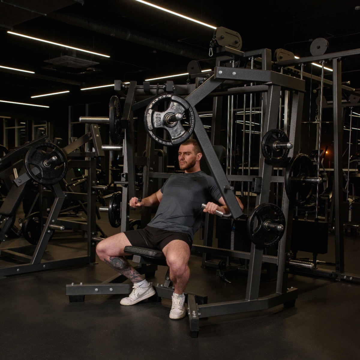 Профессиональный тренажер для коммерческого использования SM2014 Независимый жим от груди широким хватом предназначен для тренировки больших грудных мышц.