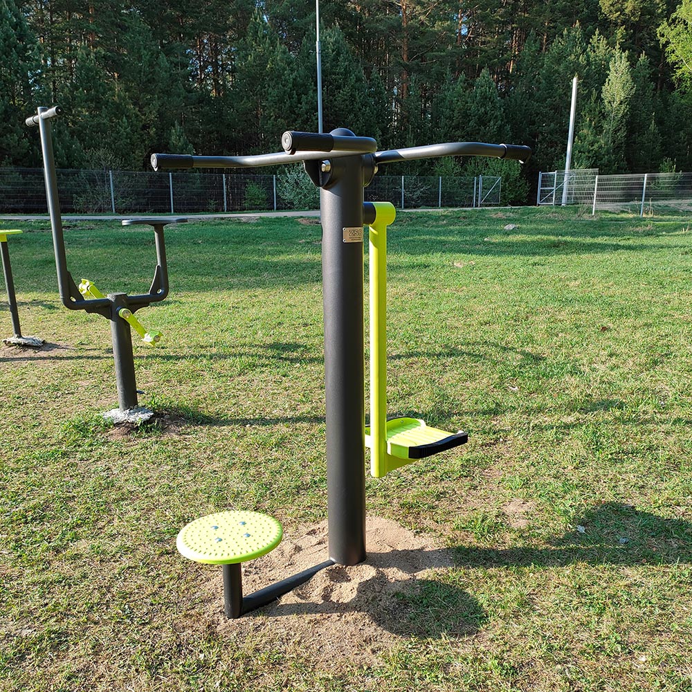 Сдвоенный тренажер оснащен двумя рукоятями, выполненными из стальной трубы диаметром 33 мм с толщиной стенки 3,2 мм. Радиус изгиба трубы 90 мм.