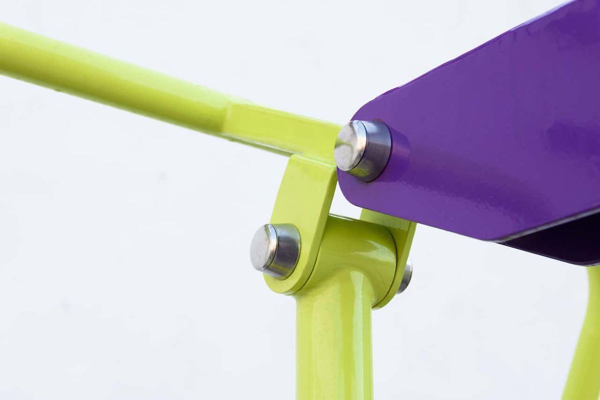 Механизм ограничения амплитуды движения с фиксированным углом хода предотвращает чрезмерное отклонение рабочих рычагов, исключая возможность травмирования пользователя и снижая ударные нагрузки на конструкцию. Дополнительно выполняет функцию антивандальной защиты, исключая контакт подвижных элементов между собой.