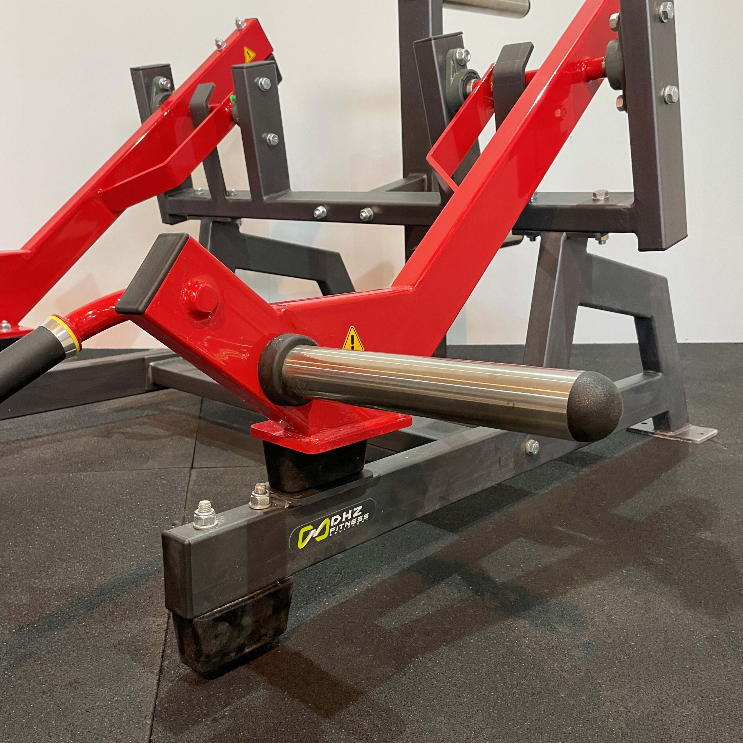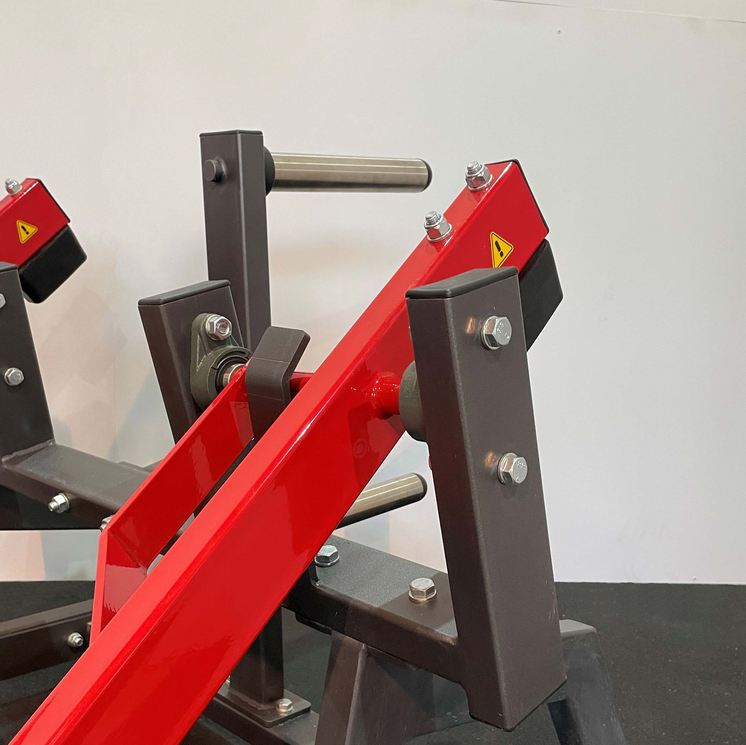 На раме закреплены металлические рубчатые пластины для защиты тренажера от износа и спортсмена от скольжения при выполнении упражнения.