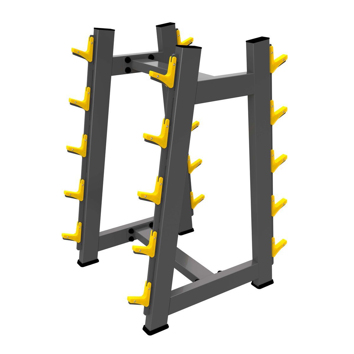 Стойка для штанг А-3055 соответствует всем требованиям профессионального оборудования. Конструктивные элементы рамы изготовлены из высококачественной стали, покрыты износостойкой двухслойной полимерной краской. Толщина профиля 3 мм имеет большой радиус угла, что придает тренажеру более элегантный внешний вид. Резиновые подпятники обеспечивают устойчивость и предотвращают повреждение полового покрытия в помещении. Позволяет поддерживать порядок в зоне силовых тренировок, экономит место, обеспечивает безопасность хранения 10 фиксированных штанг.