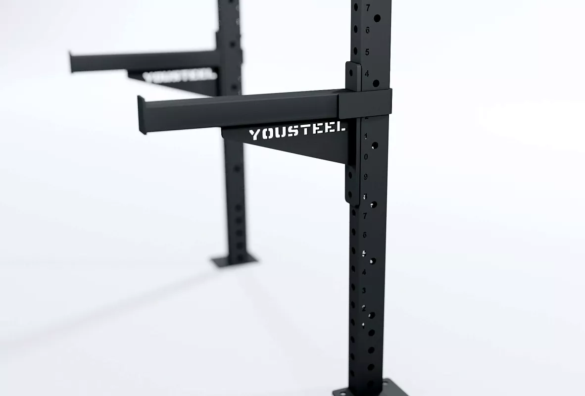 Страховочные упоры быстро и легко устанавливаются на функциональную раму и предназначены для обеспечения безопасности тренировок. Если атлет тренируется самостоятельно и выполняет упражнения с максимальными весами, ему необходимо обеспечить безопасный способ освободиться от снаряда в случае неудачной попытки. Для этого использую страховочные упоры.