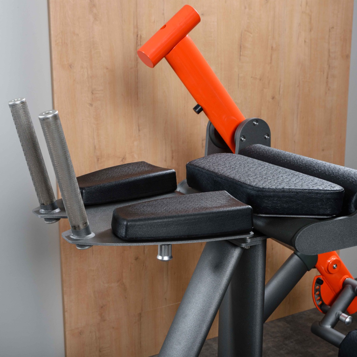 Узел с опорами для предплечий и рукоятями установлен на металлической пластине толщиной 5 мм, регулируется по горизонтали в восьми положениях при помощи механического фиксатора, что обеспечивает правильное положение корпуса при выполнении упражнения.
