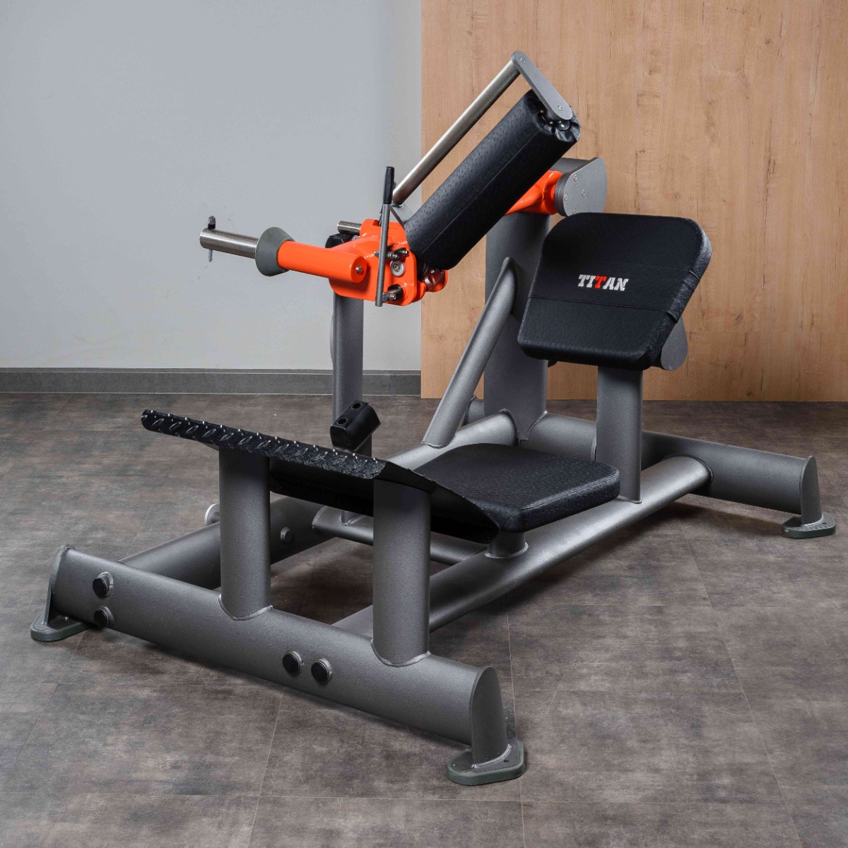 Платформа для ног выполнена из рифлёного стального листа толщиной 4 мм, исключающего соскальзывание во время выполнения упражнения. Платформа установлена под углом для естественного положения стоп при разгибании таза, не регулируется.