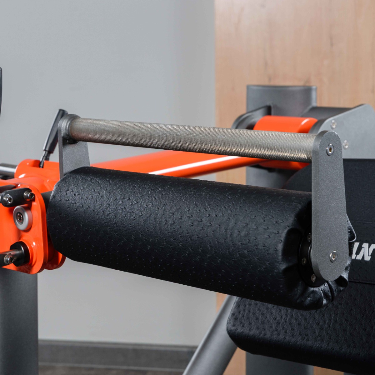 Узел «валик–рукоять» оснащён механизмом откидывания для удобного захода и выхода из тренажёра. Управление производится при помощи рычага фиксации, расположенного справа от валика. При потягивании рукояти на себя валик поднимается вручную и фиксируется в верхнем положении.