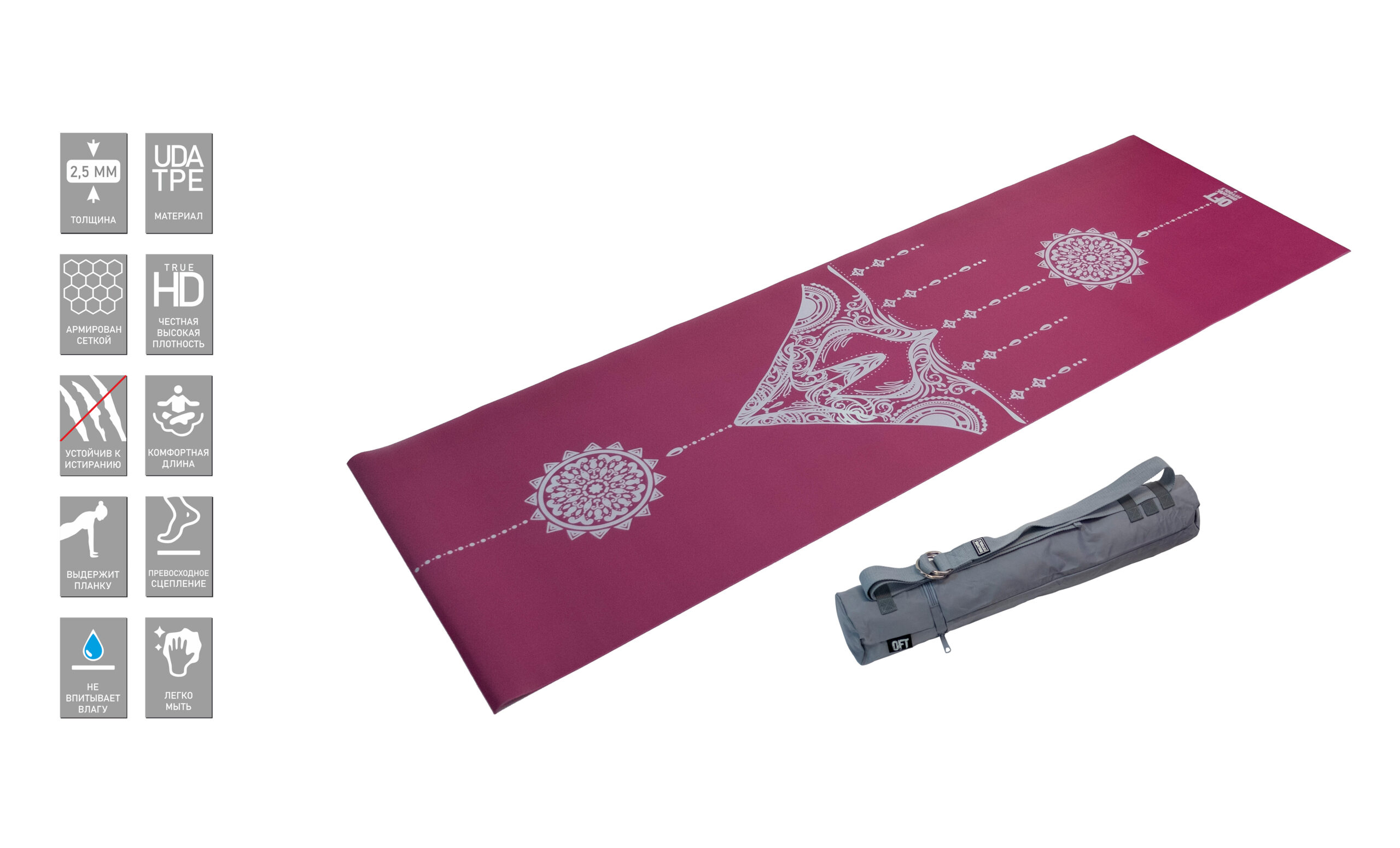 - Плотность: цилиндр OFT обладает высокой плотностью, что обеспечивает надежную твердость при выполнении интенсивных упражнений, не проминается со временем.
