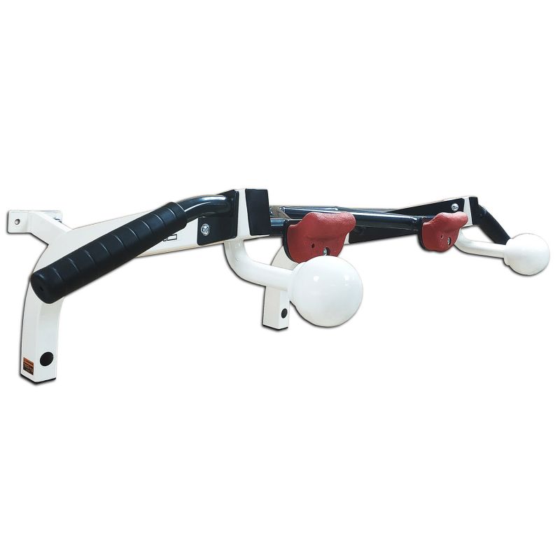 Турник настенный со сферами и зацепами V-SPORT HL-020, предназначен для выполнения основных упражнений на подтягивания: широкий хват, средний, косой и узкий. Турник снабжен сферами и зацепами, что позволяет разнообразить выполняемые упражнения. Предусмотрено крепление, позволяющее закрепить тренажёр на стену. Ростовые пределы ограничиваются лишь высотой установки турника, а весовые — 120 кг максимум.