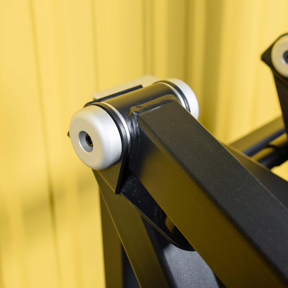 Яркий полуавтоматический фиксатор желтого цвета регулировки положения сиденья и подушки для груди, регулируется в 8-ми положениях.