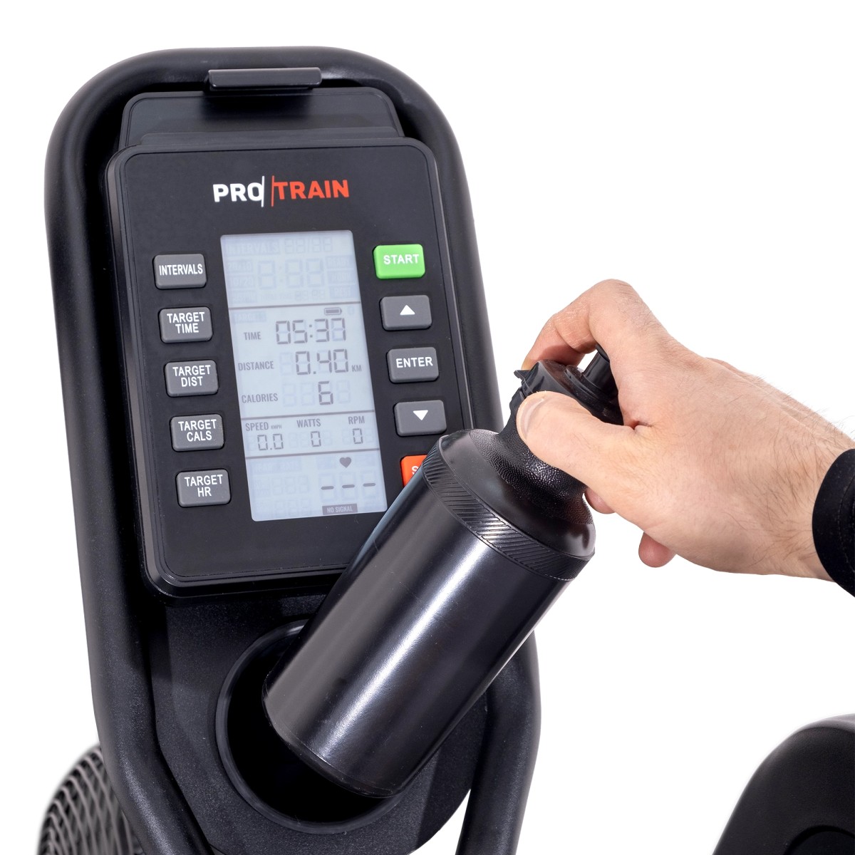 Велотренажер Protrain ProBike-005 — эффективный кардиотренажер для HIIT тренировки всего тела. Бесконечное сопротивление: чем интенсивнее усилия спортсмена, тем выше аэродинамическая нагрузка. Многопозиционные рукоятки для изменения хвата и смещения нагрузки. Руки и плечевой пояс можно прорабатывать вместе или раздельно.Область применения: профессиональная;Система нагрузки: аэродинамическая;Количество уровней нагрузки: неограниченное количество уровней сопротивления;Максимальный вес пользователя: 135 кг; Консоль/дисплей: LCD-дисплей;Программы и функции: 9 шт.; Размеры товара в сборе: 128 х 27 х 89 см.