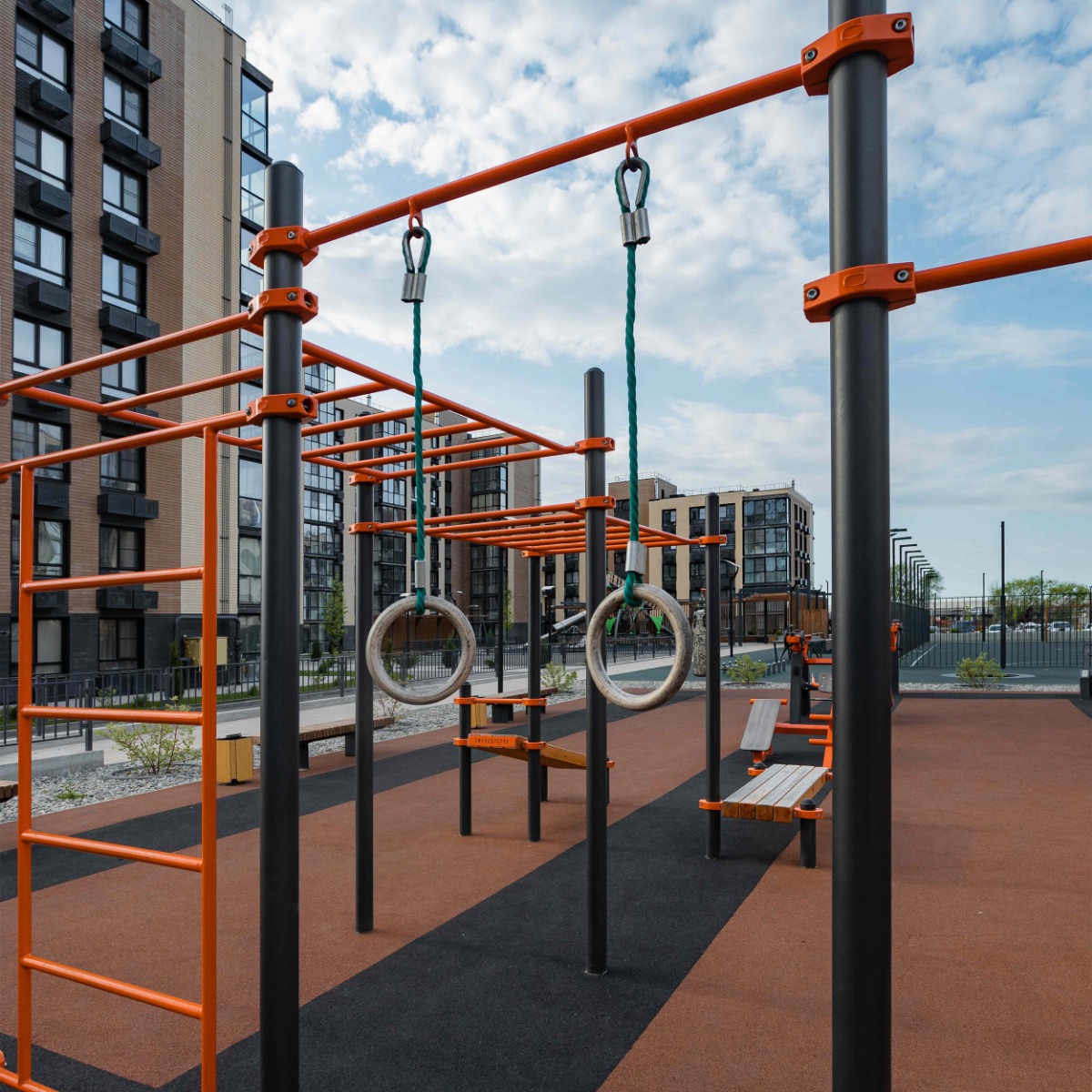 Комплектующий элемент серии уличных тренажёров WORKOUT перекладина 1200 мм с гимнастическими кольцами ZAVODSPORTA* для создания индивидуального спортивного комплекса.