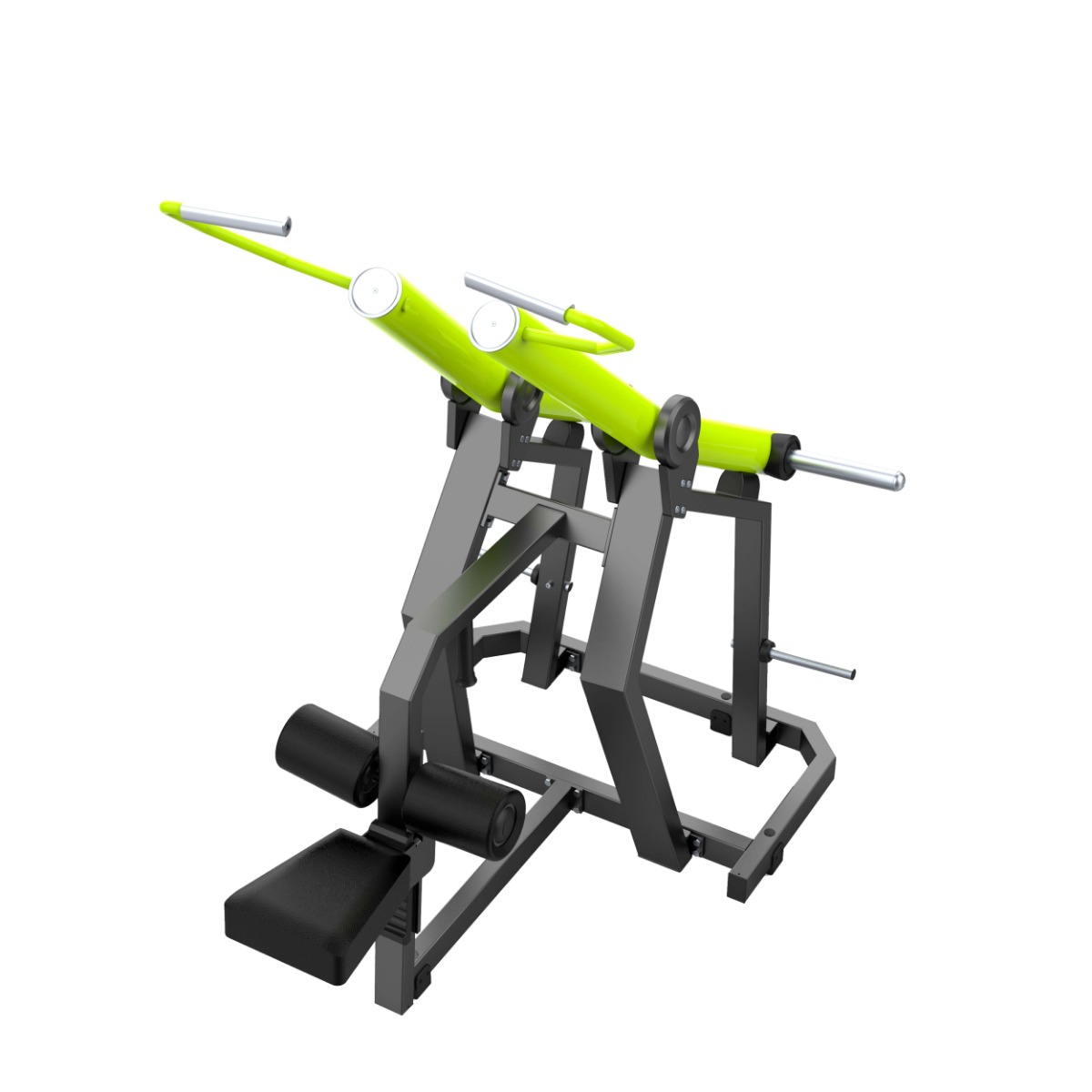 Подвижные рычаги выполнены из изогнутого круглого стального профиля без сварных соединений в рабочей зоне, что повышает прочность конструкции и придаёт тренажёру современный и выразительный внешний вид.